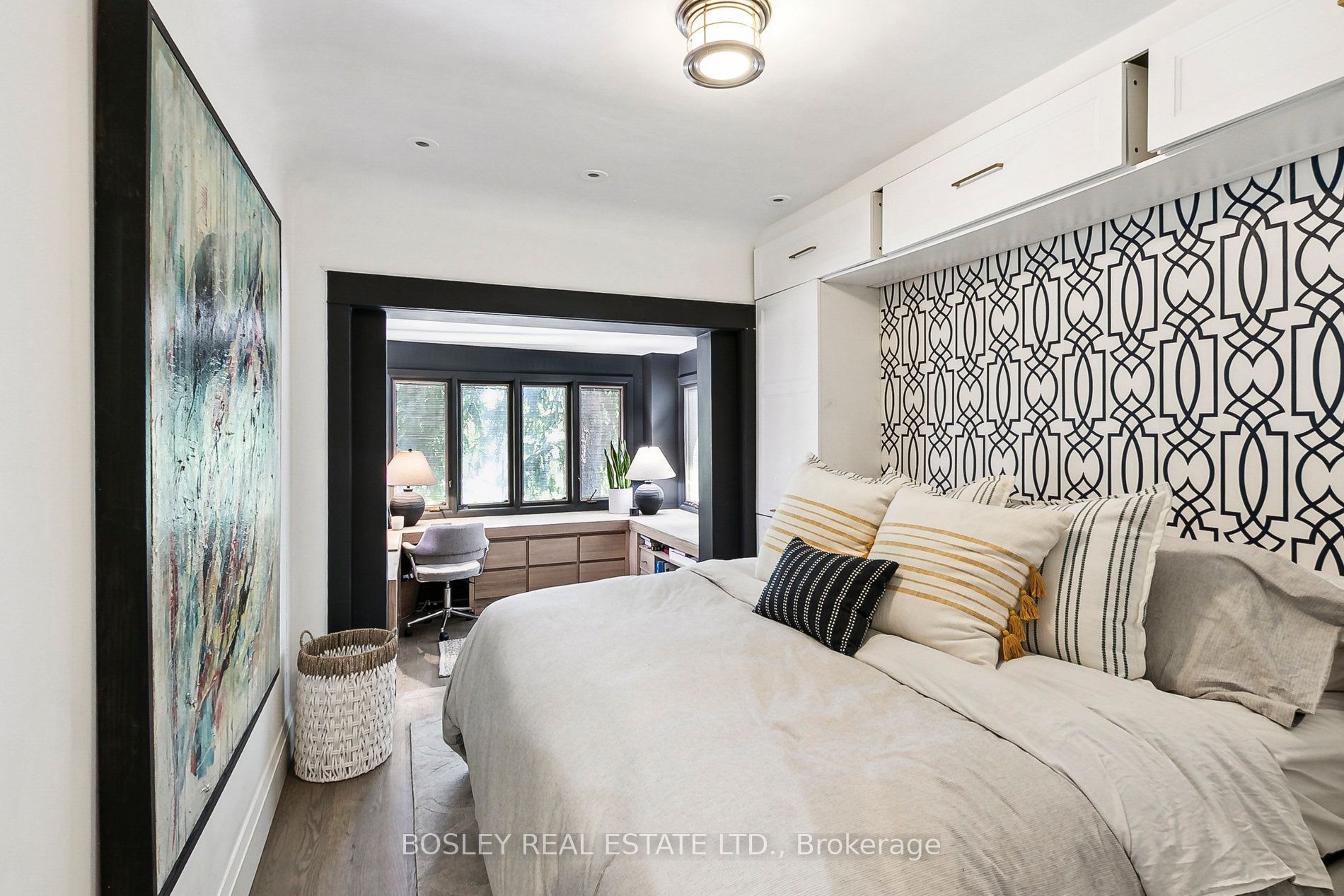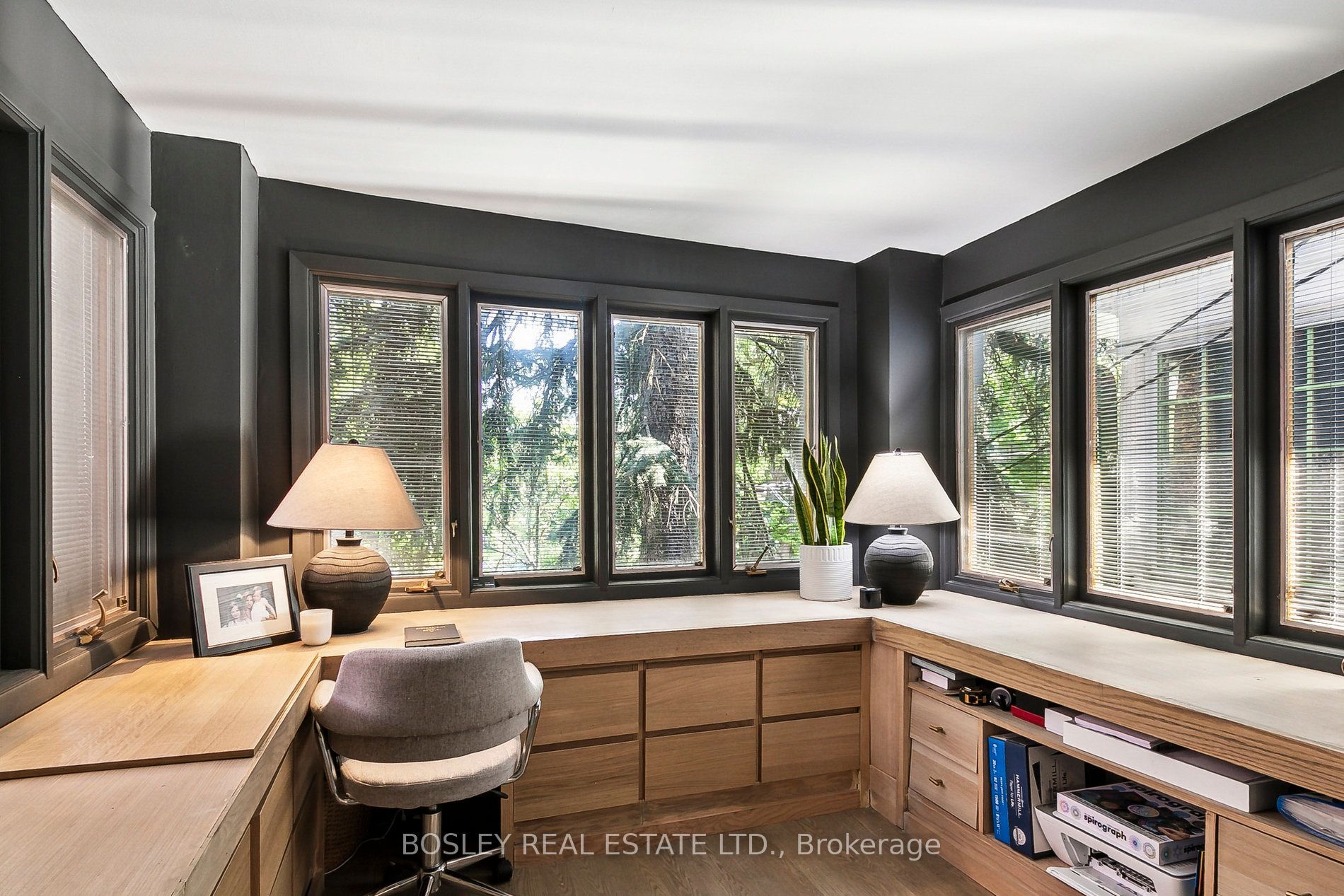 Upstairs, the second floor offers a primary retreat with a 5-piece ensuite, walk-in closet, and additional built-in storage. Across the hall, a second spacious bedroom with built-in storage and a home office nook is next door to a welcoming family room, complete with a second wood-burning fireplace. The family room could easily be converted into a fifth bedroom if desired.