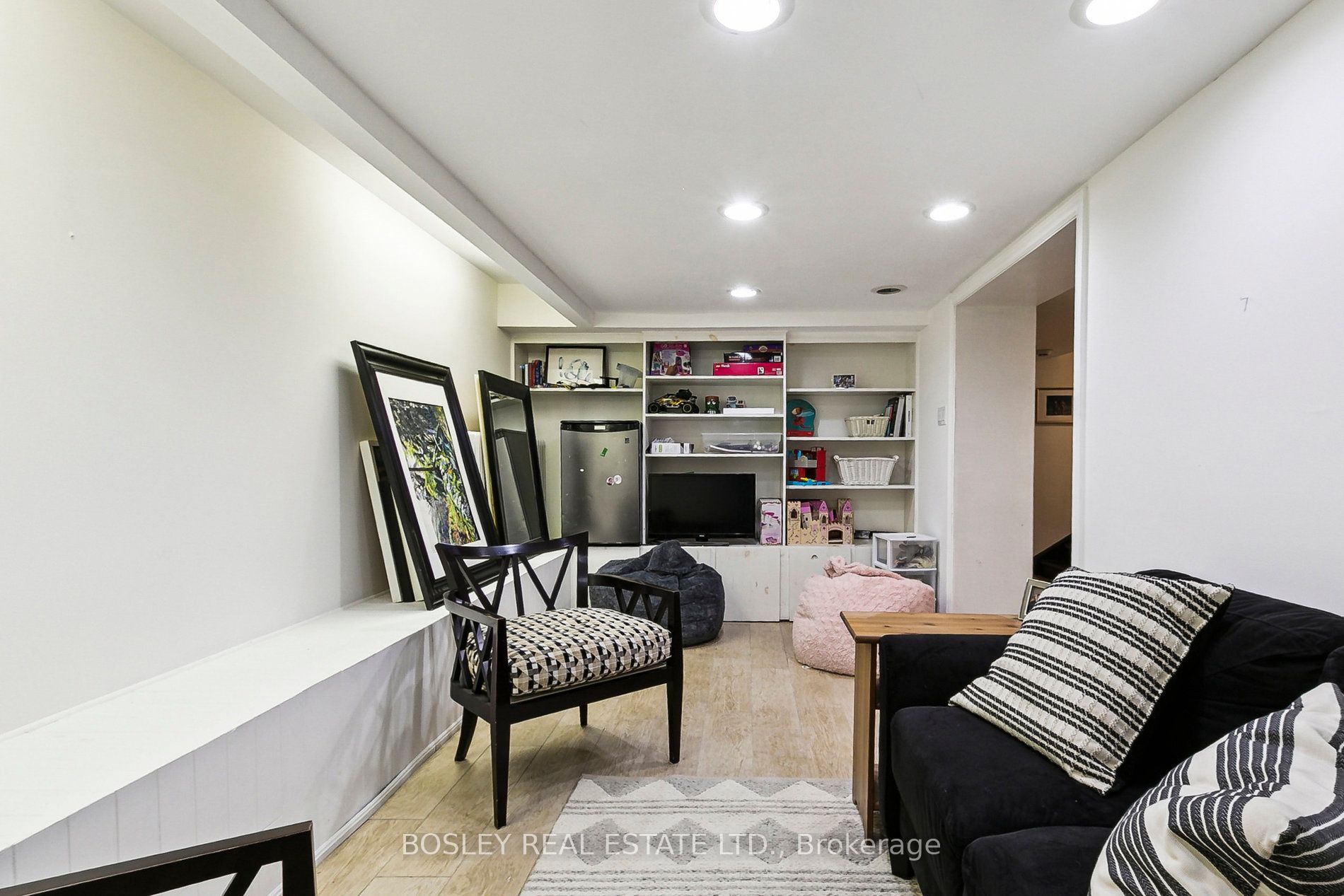 The lower level boasts a large entertainment zone, ample storage, and a potential sixth bedroom. Complimented by the side entrance to the home, this space offers an ideal setup for a nanny suite, guest quarters, or in-law accommodations.